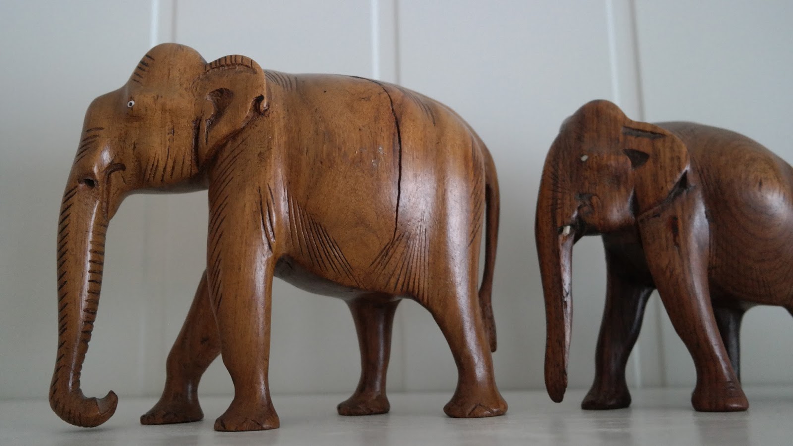 Herfra jeg sitter, er det fin "utsikt" mot husets lille elefantsamling.
